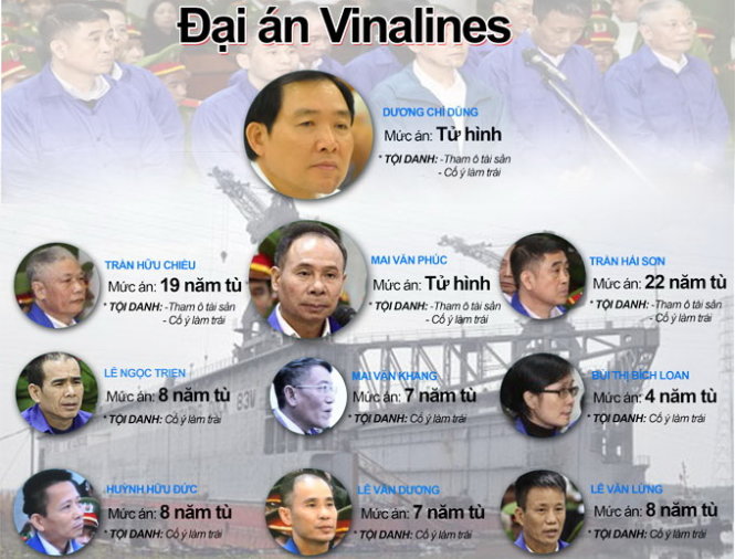 - Mai Văn Phúc: Cựu Tổng giám đốc Vinalines, bị tuyên án tử hình cùng tội danh với Dương Chí Dũng.